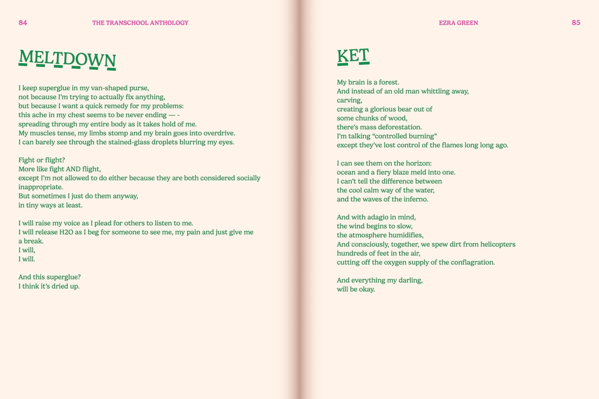 Transchool: Volume 1 is an anthology featuring the multifaceted work — poetry, fiction, nonfiction, screenplays, genre-defying writing — by the first class of Transcshool creative writers and their mentors, including Ali Liebegott, Andrea Jenkins, Jaclyn Moore, and Thomas Page McBee, with introduction letters from Chase Strangio and Kyle Lasky of @Transanta, Drew Denny, and Ren Heintz. Allies in Arts founded Transchool to empower the voices of trans writers ages 18-25.