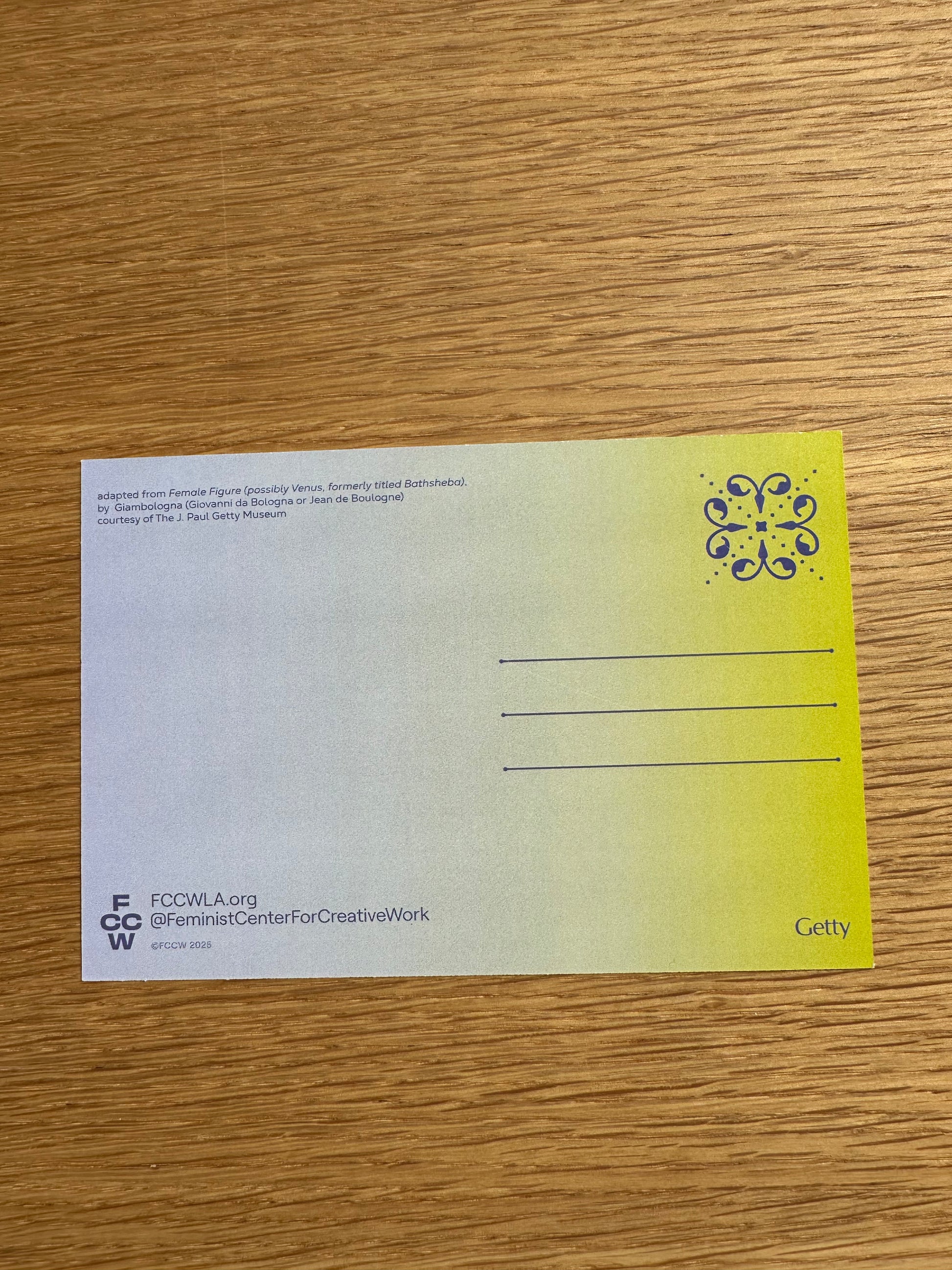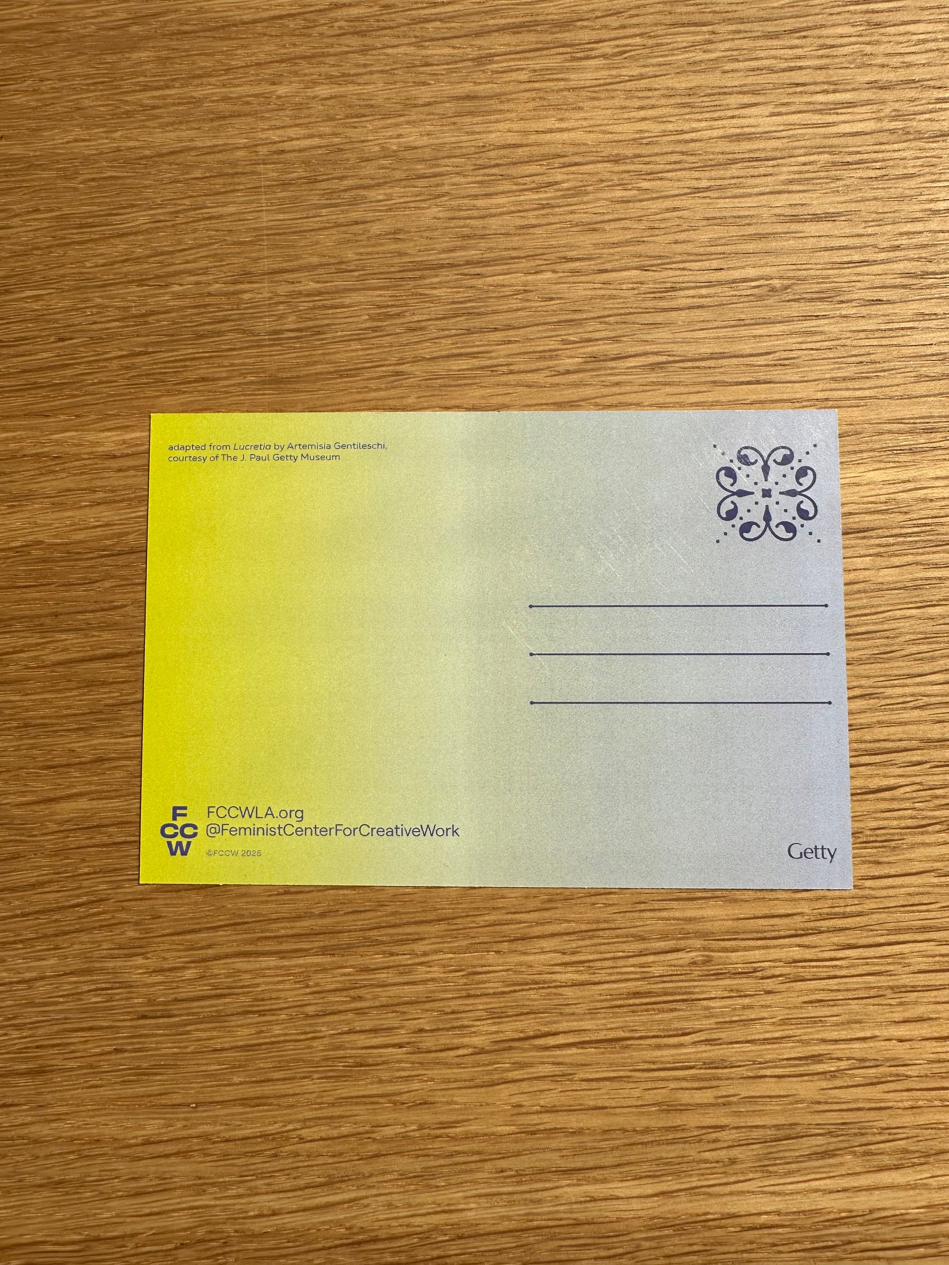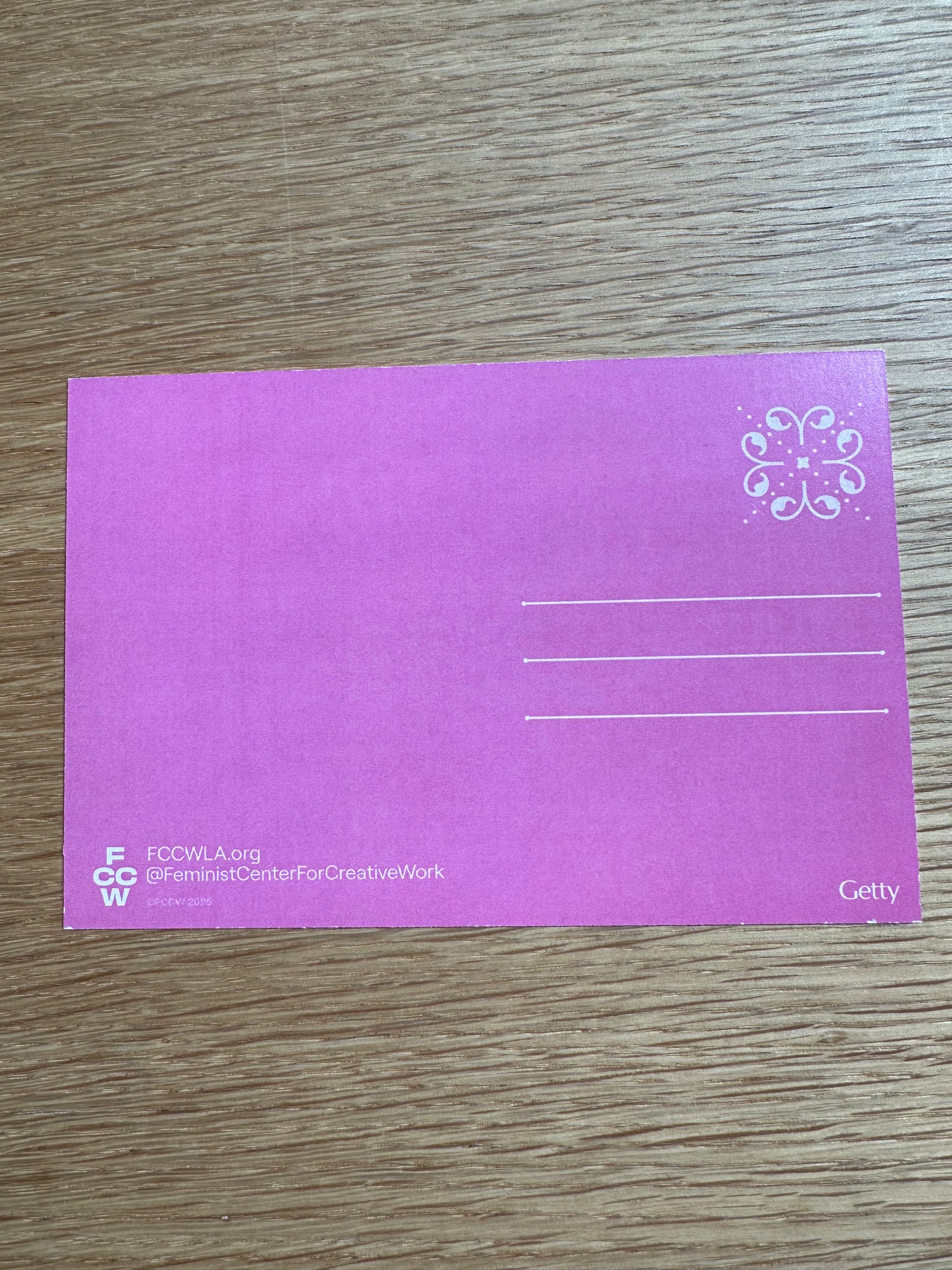 This packet includes 1 sticker sheet and 4 limited-edition postcards designed by Sundhya Anthony for FCCW, that we made with the Getty Research Institute for our Valentine's Day letter-writing workshop, in support of their archival show How To Be A Guerrilla Girl.