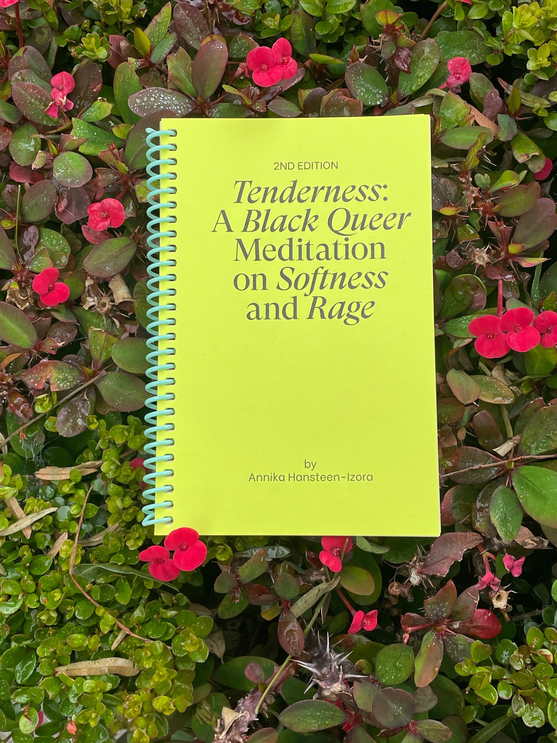 What would it mean if tenderness could hold a simultaneous existence of joy and rage? How to call on tenderness as a practice of love, rather than a regurgitation of white supremacy? Author and writer Annika Hansteen-Izora explores answers in Tenderness: A Black Queer Meditation on Softness and Rage. A meditation, critical inquiry, and invitation to expand our imaginations on meanings of tenderness, this piece calls into question conceptions of tenderness that are rooted in desirability, anti-Blackness and white supremacy, and instead unfolds the potentials of tenderness as a tool, a balm, a healing agent, and a question to lean into.